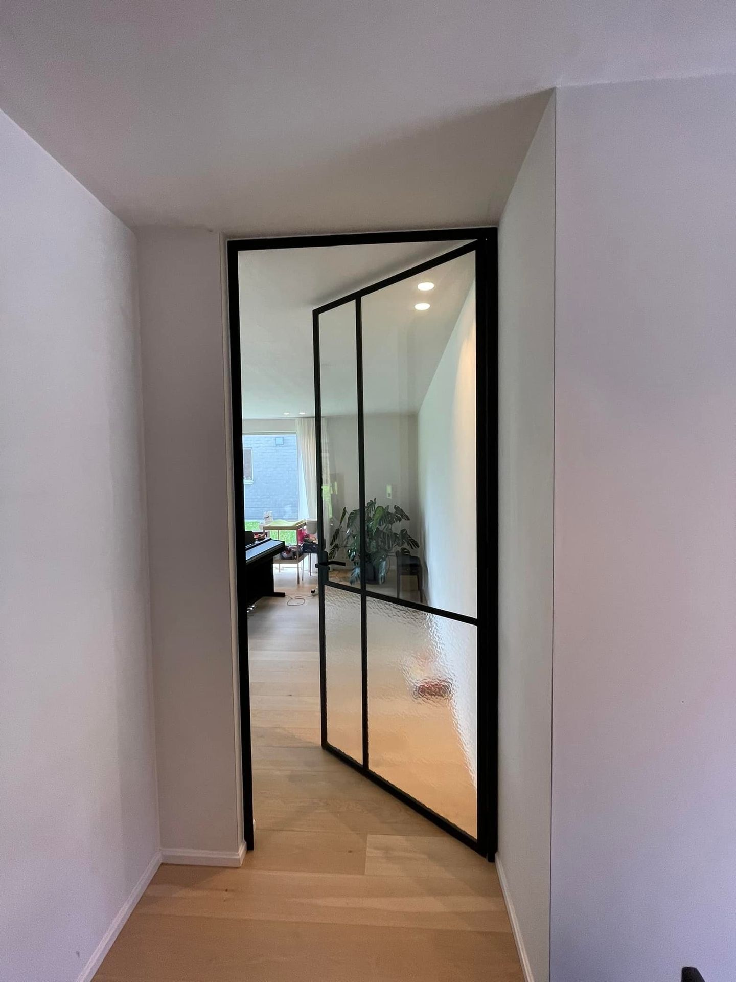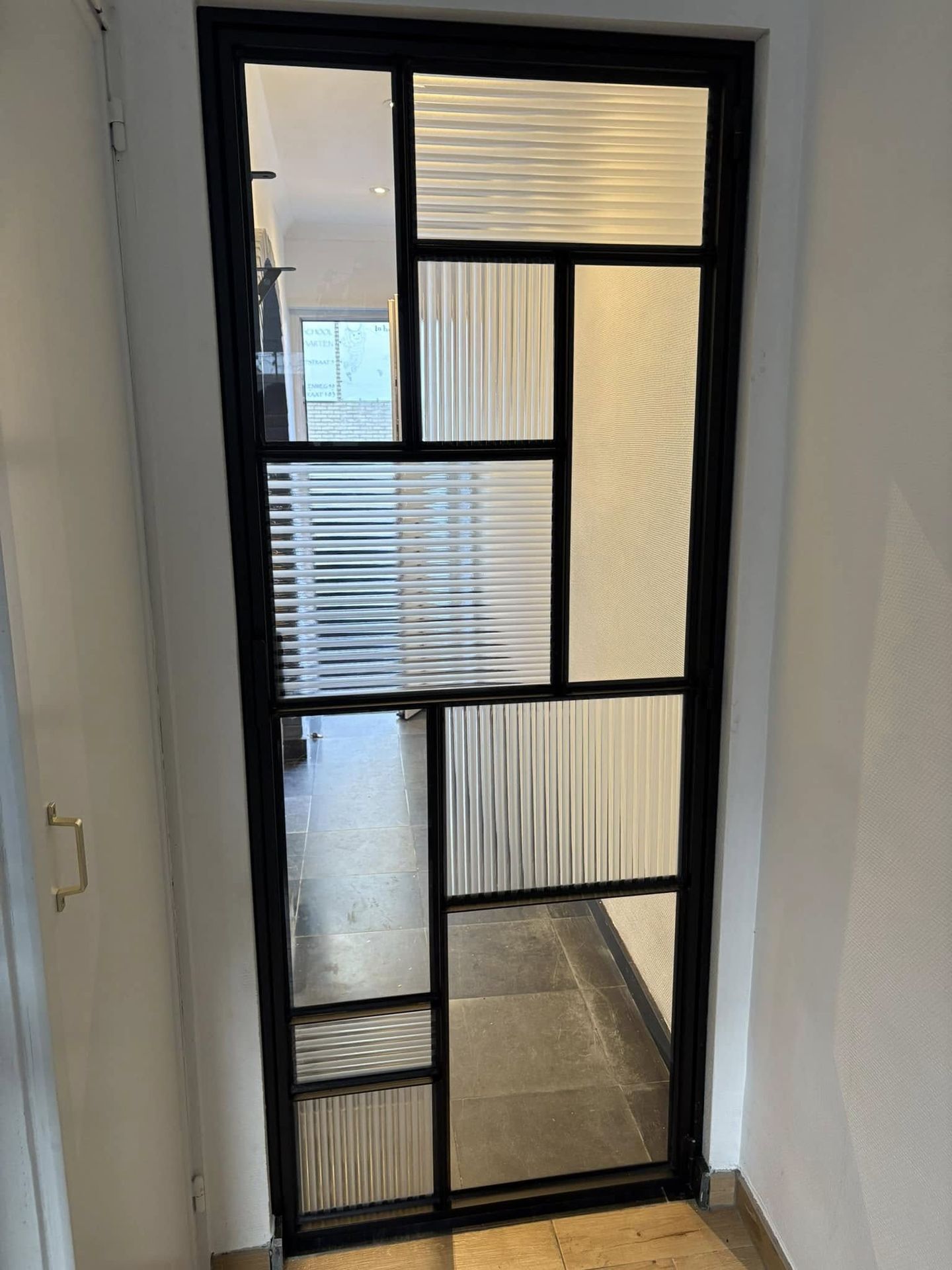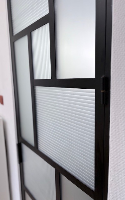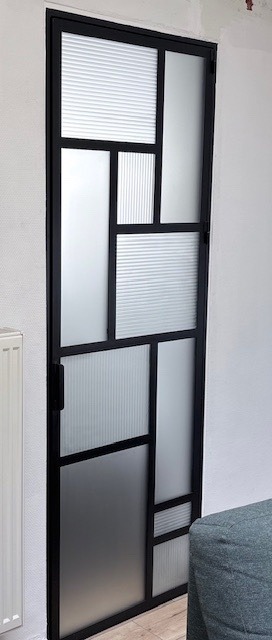 Metalen Deur met verschillende soorten glas: