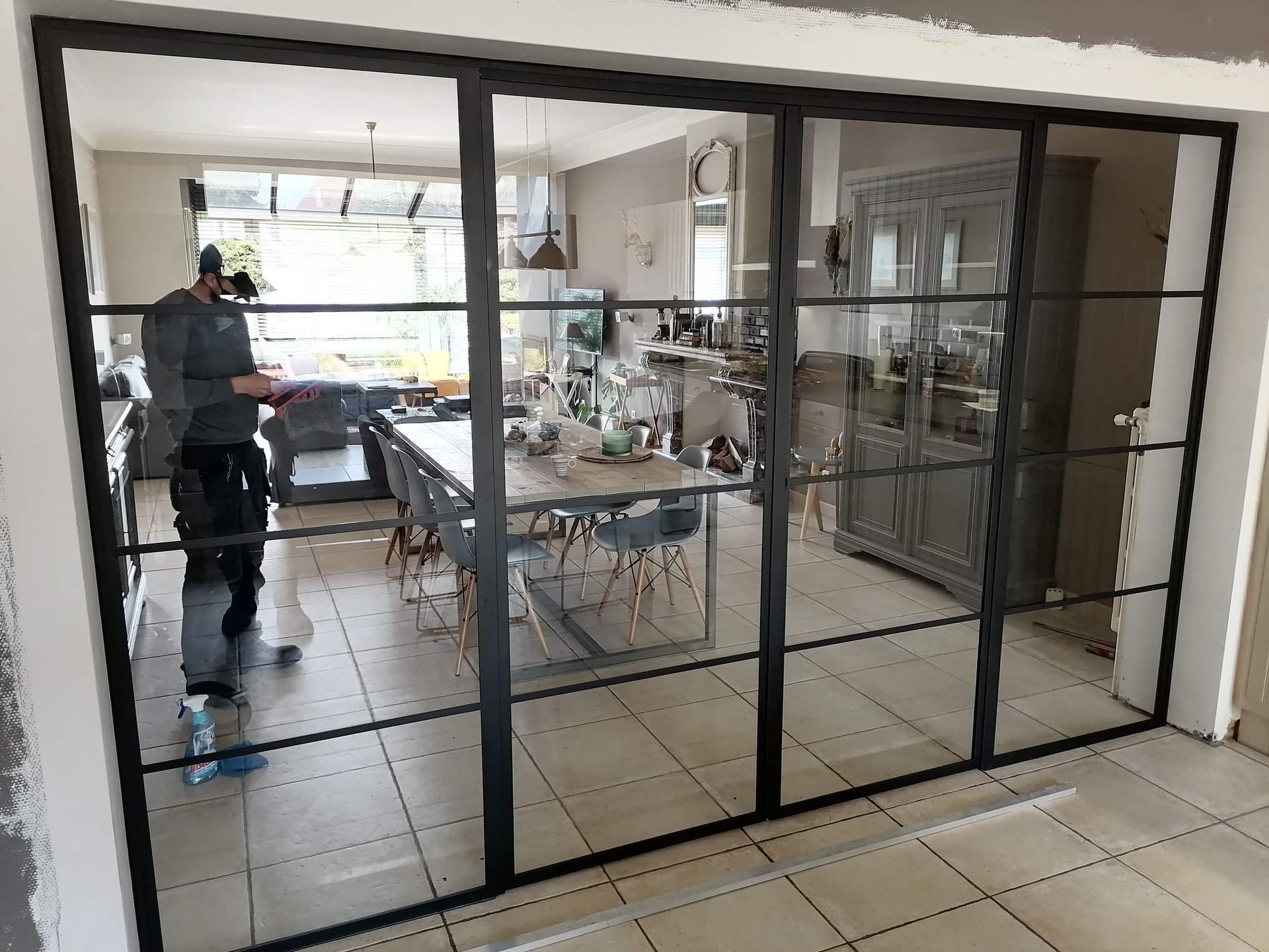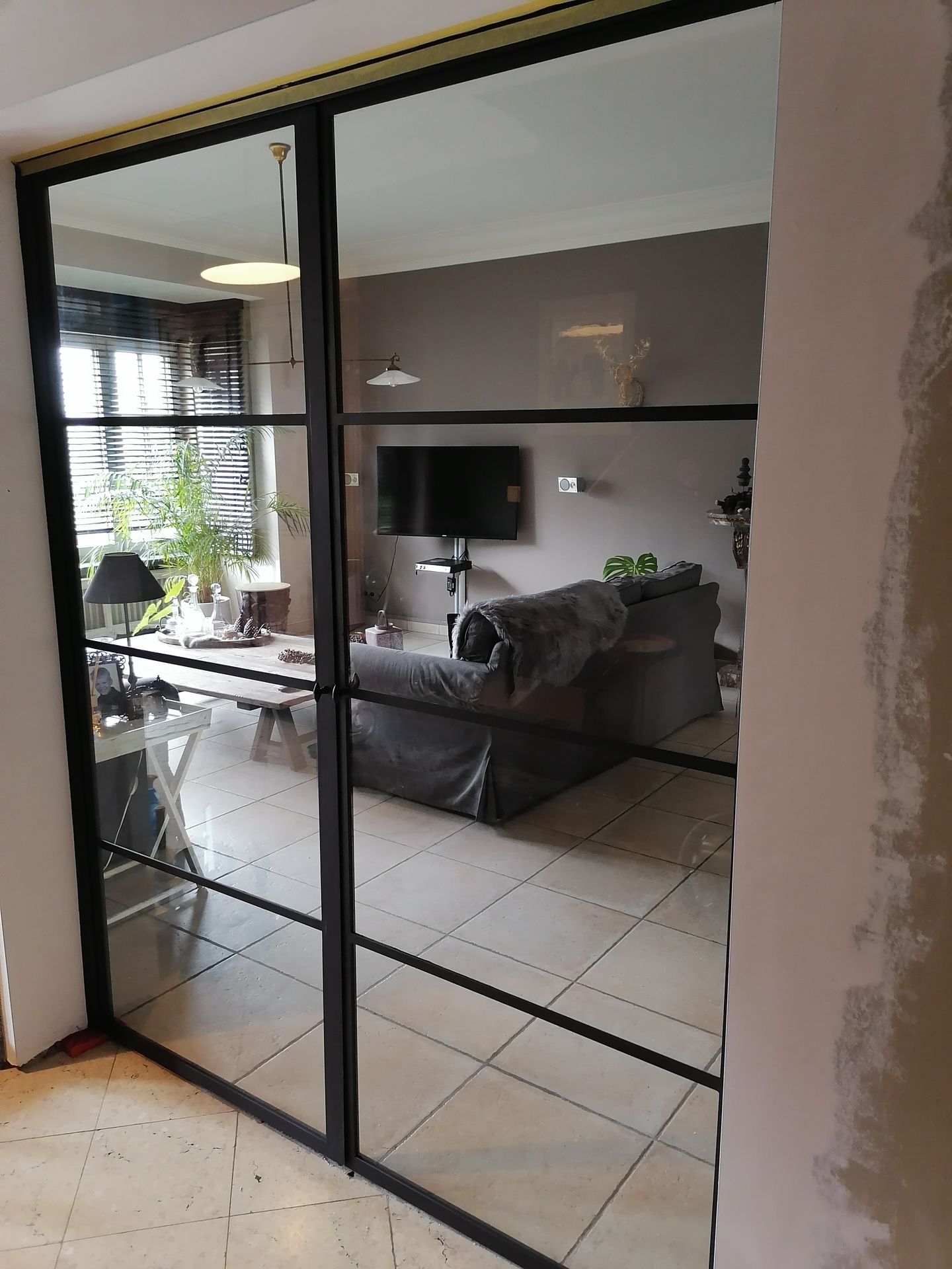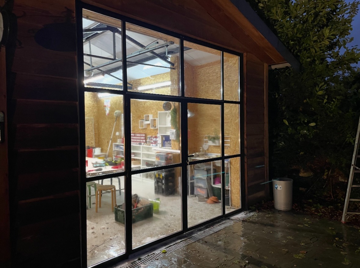 Metalen Deur met verschillende soorten glas: